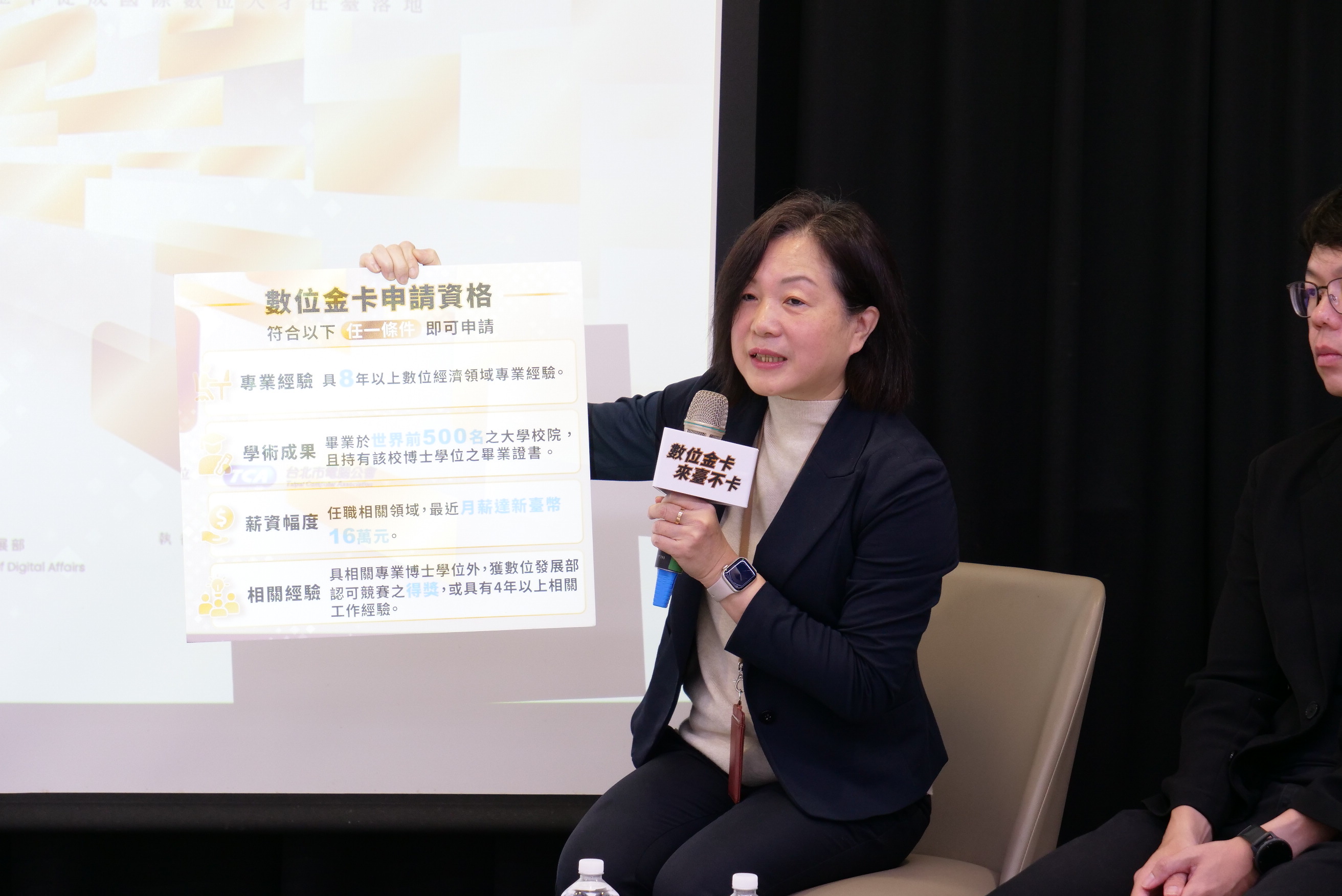 數發部數位產業署副署長黃雅萍致詞表示,臺灣在數位科技與資通訊領域具備深厚實力,但在全球人才競爭日益激烈的情況下,如何吸引更多國際專業人才來臺發展,已成為政府推動數位產業與創新生態的重要課題。透過數位金卡制度,希望讓更多具備專業能力的國際人才來臺交流合作,為臺灣數位產業注入新動能。