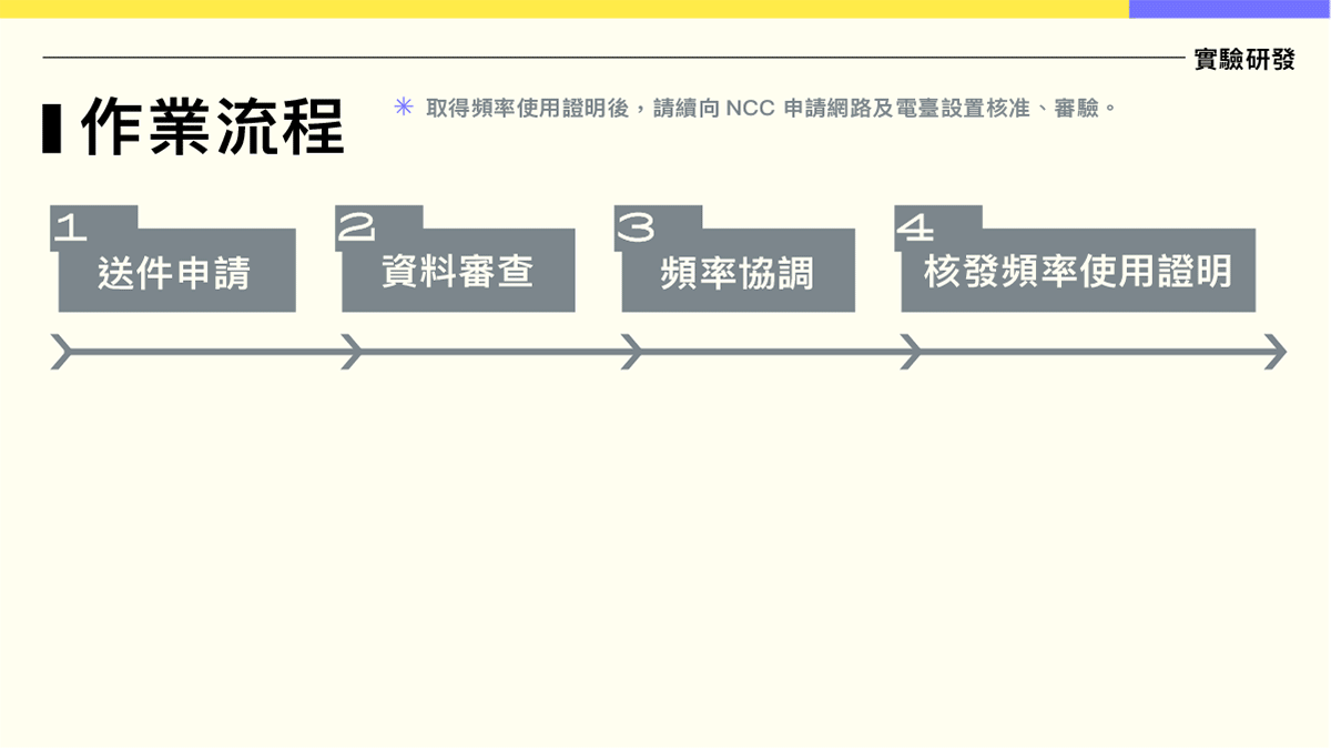 • 無線電頻率申請諮詢、申請書表填寫協助與內容預審