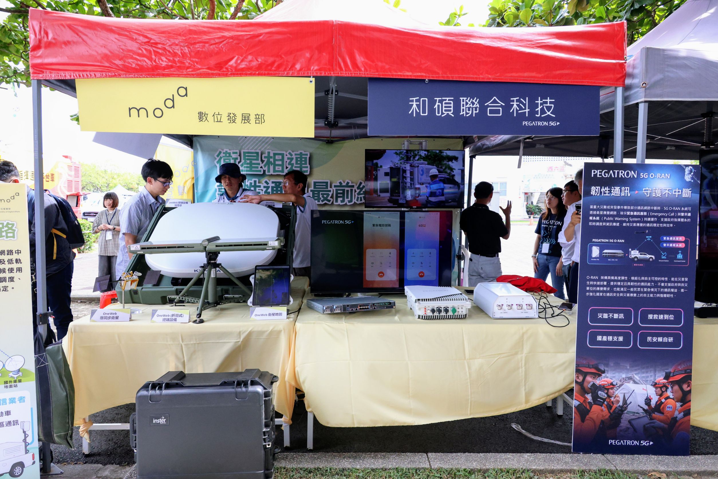 For this drill, MODA collaborated with the Telecommunications Technology Center (TTC), Chunghwa Telecom, and Pegatron Corporation to conduct a proof-of-concept (PoC) demonstration, deploying domestically manufactured 5G O-RAN equipment on a mobile base station vehicle to provide emergency telephone services. By combining domestically produced equipment with a multi-layered communication architecture, the feasibility of rapidly restoring basic connectivity during a disaster was validated, thereby boosting both disaster relief and public communication capabilities.