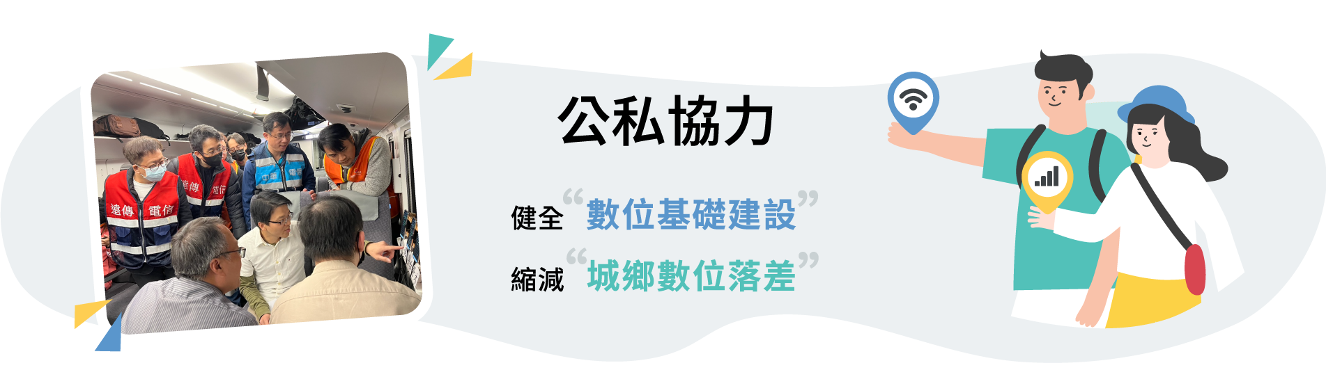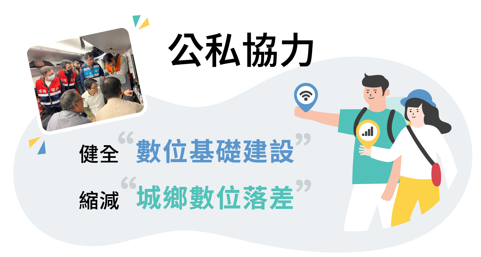 為普惠國人數位接取,本部將持續滾動檢討我國電波涵蓋情形與基地臺建置困難度,整合各部會數位資源,與電信業者公私協力積極佈建5G網路基礎建設、發展5G跨域多元應用創新服務,促進數位經濟發展,力求實現全國數位均衡發展。