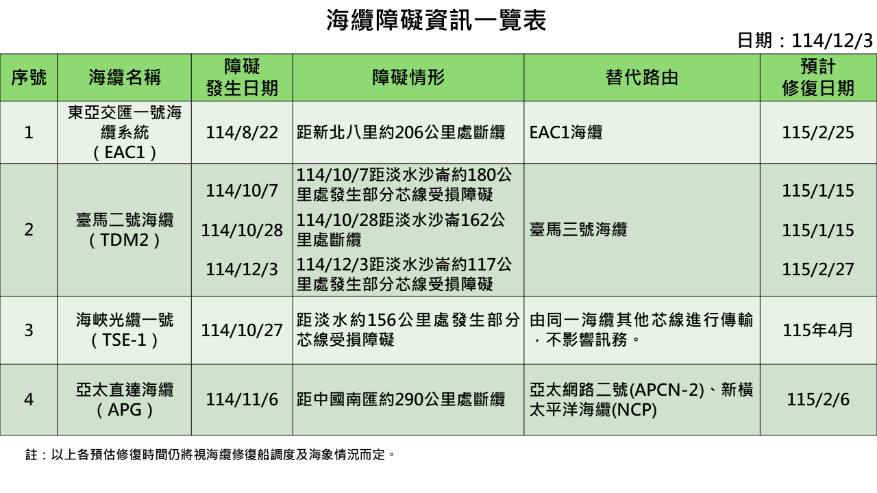 註:本網頁圖案來源 Submarine Cable Map https://www.submarinecablemap.com/country/taiwan