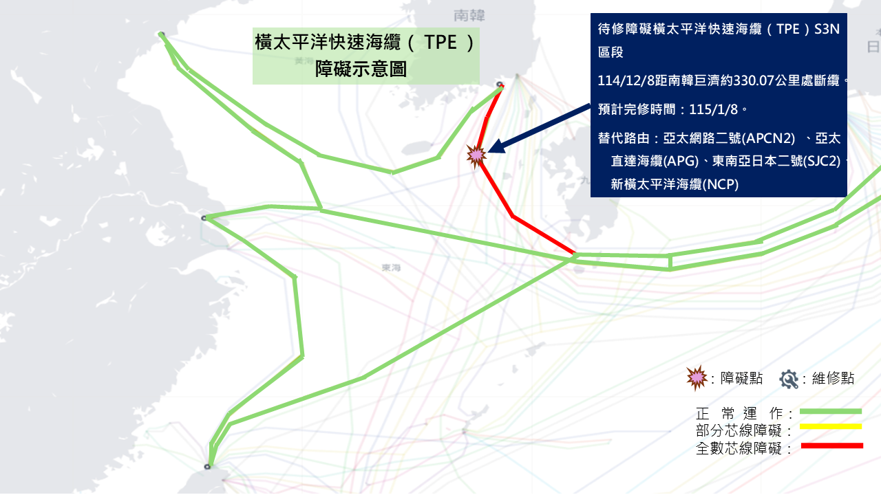 六、橫太平洋快速海纜障礙示意圖  中華電信官方公告:橫太平洋快速海纜網路(TPE)S3N區段障礙說明 | 中華電信 CHT.com.tw