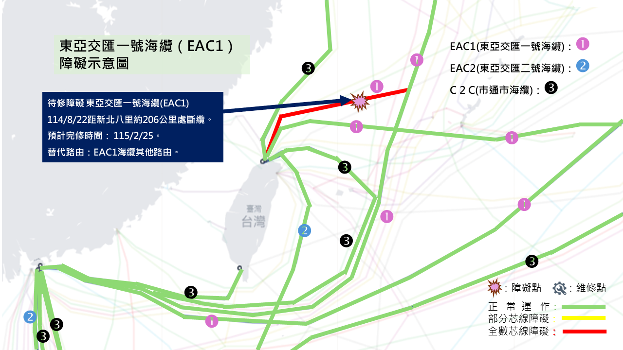 114/8/22 距新北八里約206公里處斷纜 EAC1海纜 115/2/25